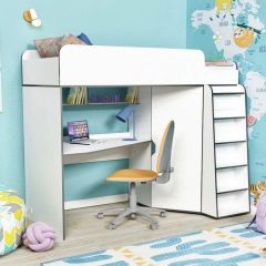 Кровать-чердак «Аракс» от фабрики ЯРОФФ – это прекрасный вариант меблировки детской комнаты, она выполнена в минималистичном стиле, в спокойных и приятных оттенках, которые обязательно понравятся владельцу комнату и создадут в ней комфорт и уют. Кровать-чердак «Аракс» от ЯРОФФ — это стильная, комфортная и функциональная мебель для детской комнаты, в ней предусмотрено удобное спальное место на втором ярусе, вместительный шкаф с распашными дверцами, а также обустроенная рабочая зона - место для учебы и досуга со столом, полками для мелочей и тумбой с выдвижными ящиками.