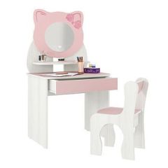 Состоит из: стула и стола с зеркалом, полками и выдвижным ящиком. Изделие симметричное.